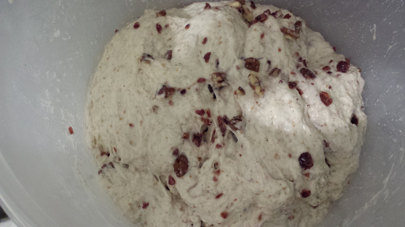 After 30 minutes added the cranberries chopped and the roasted chopped pecan and again did the pinch method and fold and let rest for 30 minutes.